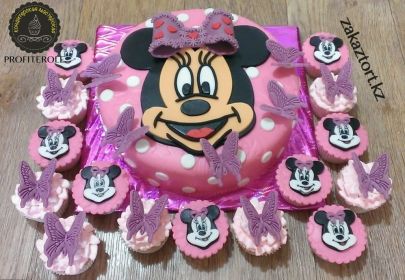 Торт и капкейки с одинаковым оформлением.