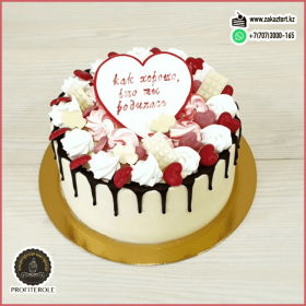 Вес 4,800. Внутри шоколадные коржи Whoopie pie c шоколадным суфле. Стоимость этого торта 21 600 тенге.